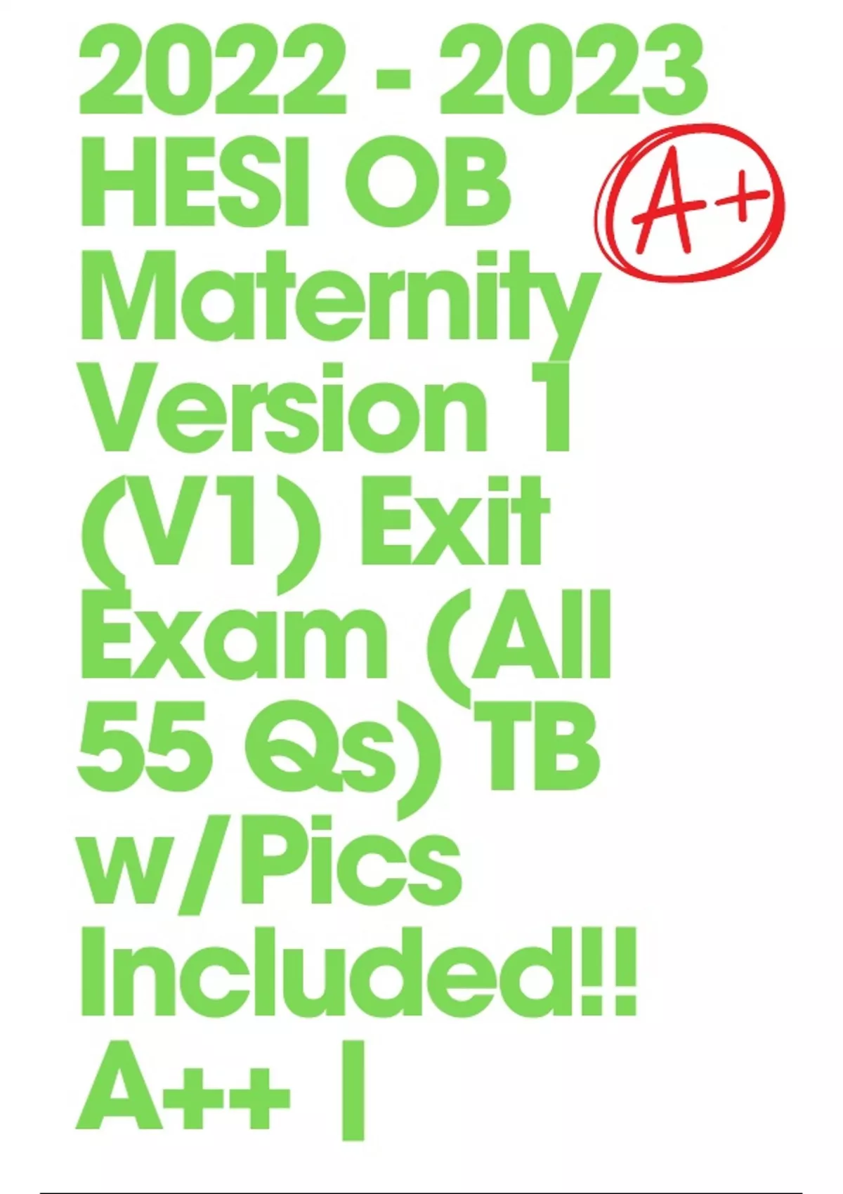 HESI OB Maternity Version 1 (V1) Exit Exam (All 55 Qs) TB w/Pics Included!! A++ |