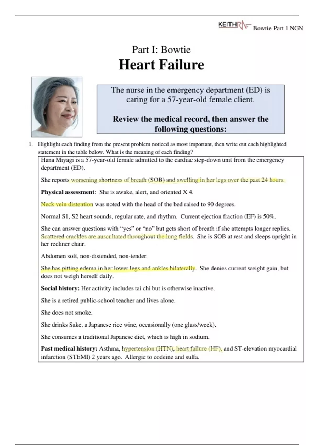 NGN Case Study of 57-year-Old Female Client: Heart Failure ANSWERED (LATEST) A+.