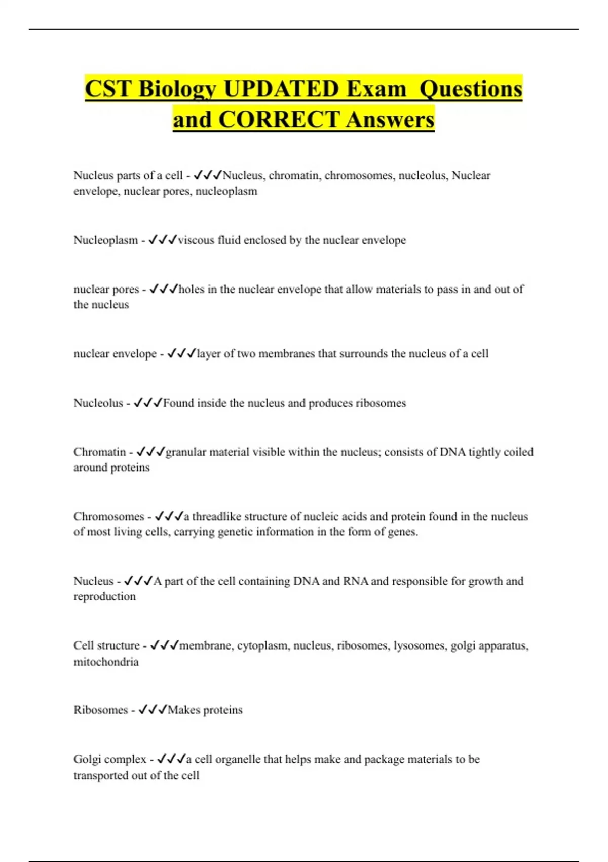 CST Biology UPDATED Exam Questions and CORRECT Answers