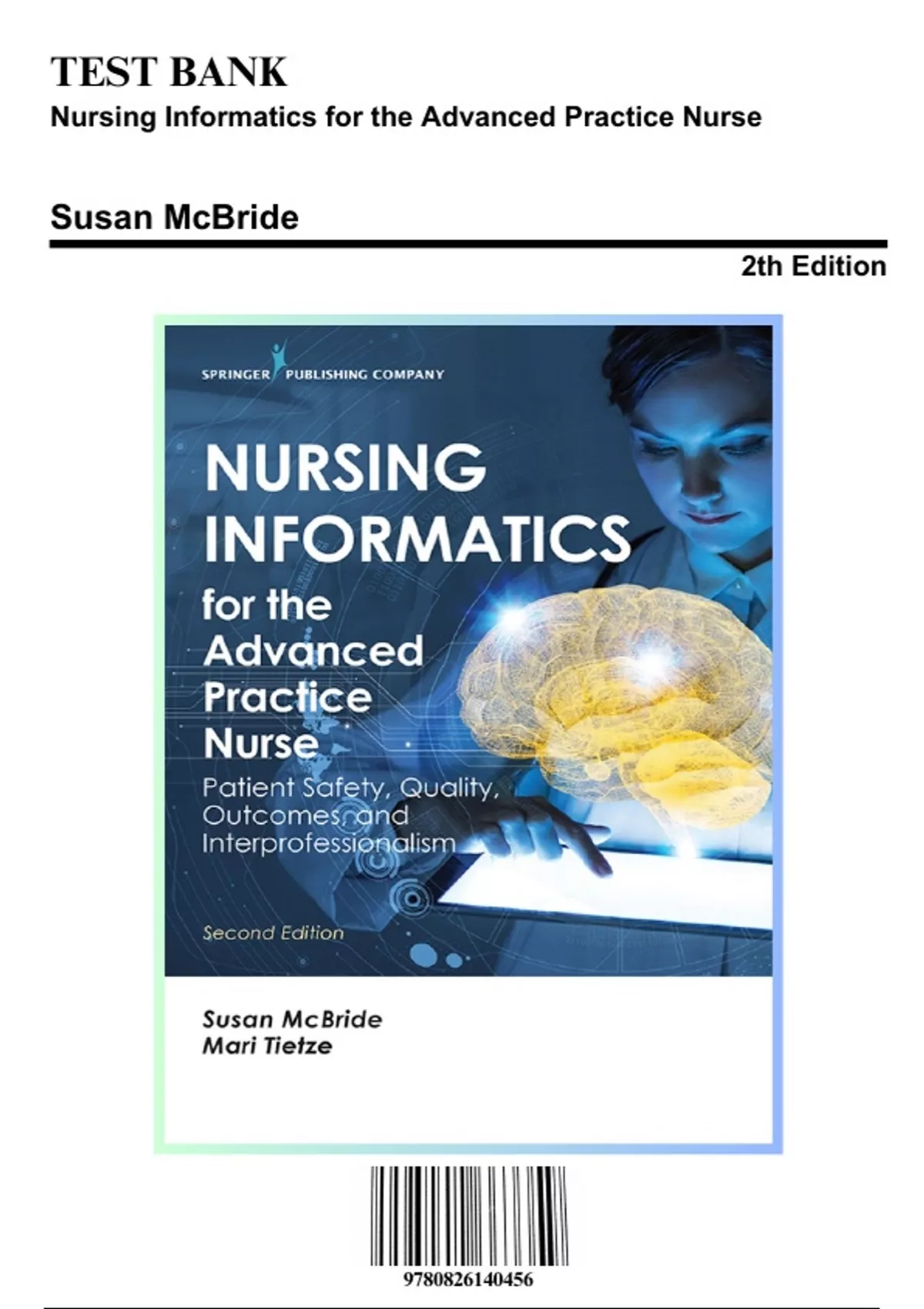 Test Bank for Nursing Informatics for the Advanced Practice Nurse, 2nd Edition by Susan McBride, 9780826140456, Covering Chapters 1-30 | Includes Rationales