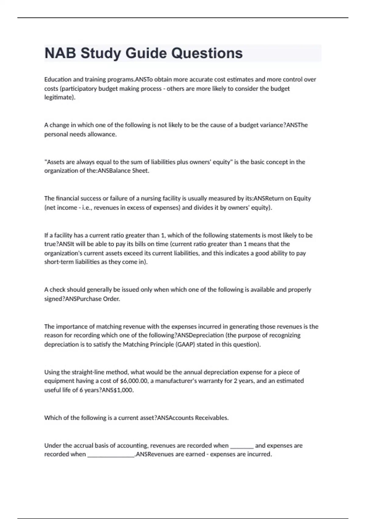 NAB Study Guide Questions And Answers Exam (RATED 100%)