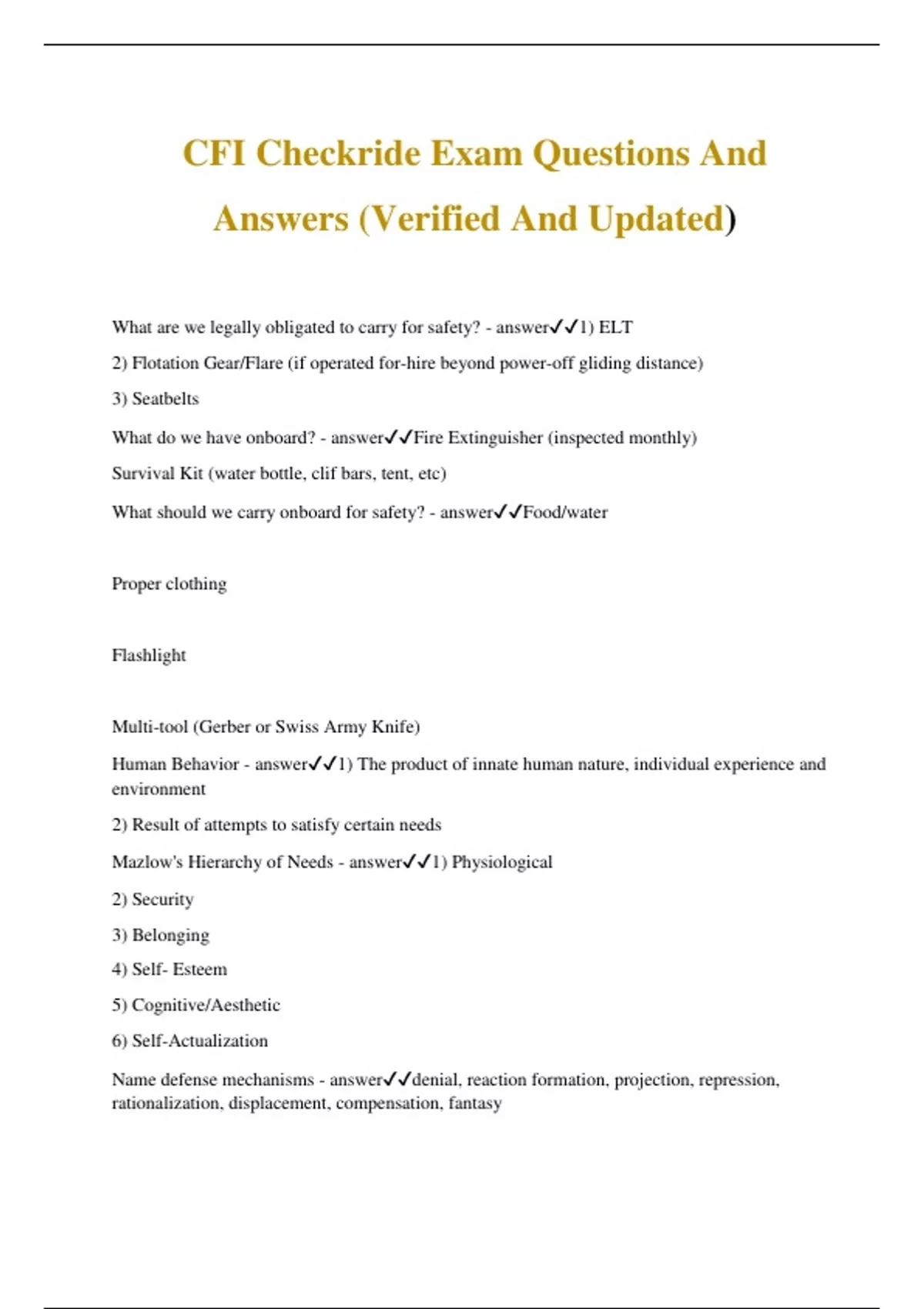 CFI Checkride Exam Questions And Answers (Verified And Updated)