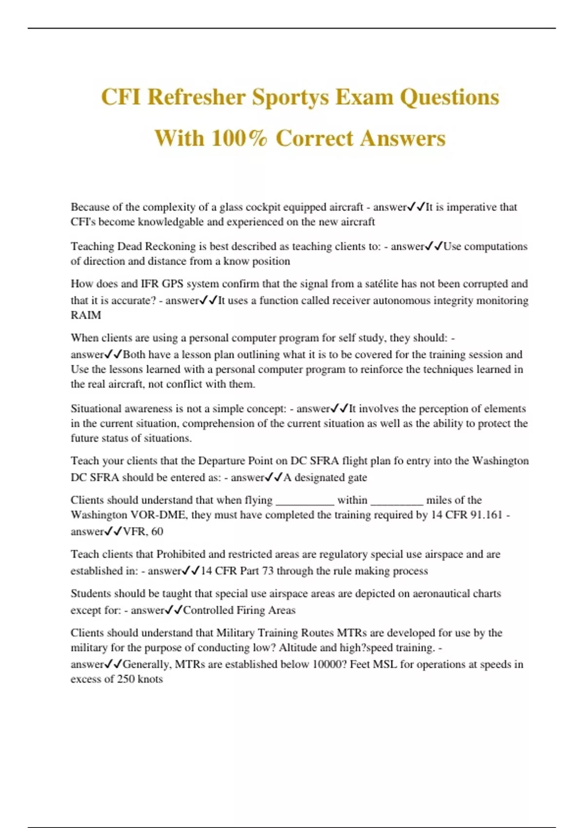 CFI Refresher Sportys Exam Questions With 100% Correct Answers