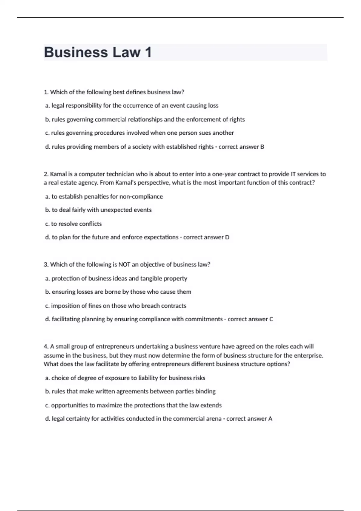 Business Law 1 correctly answered