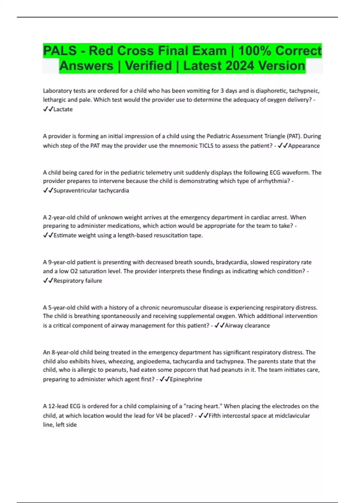 PALS - Red Cross Final Exam | 100% Correct Answers | Verified | Latest 2024 Version