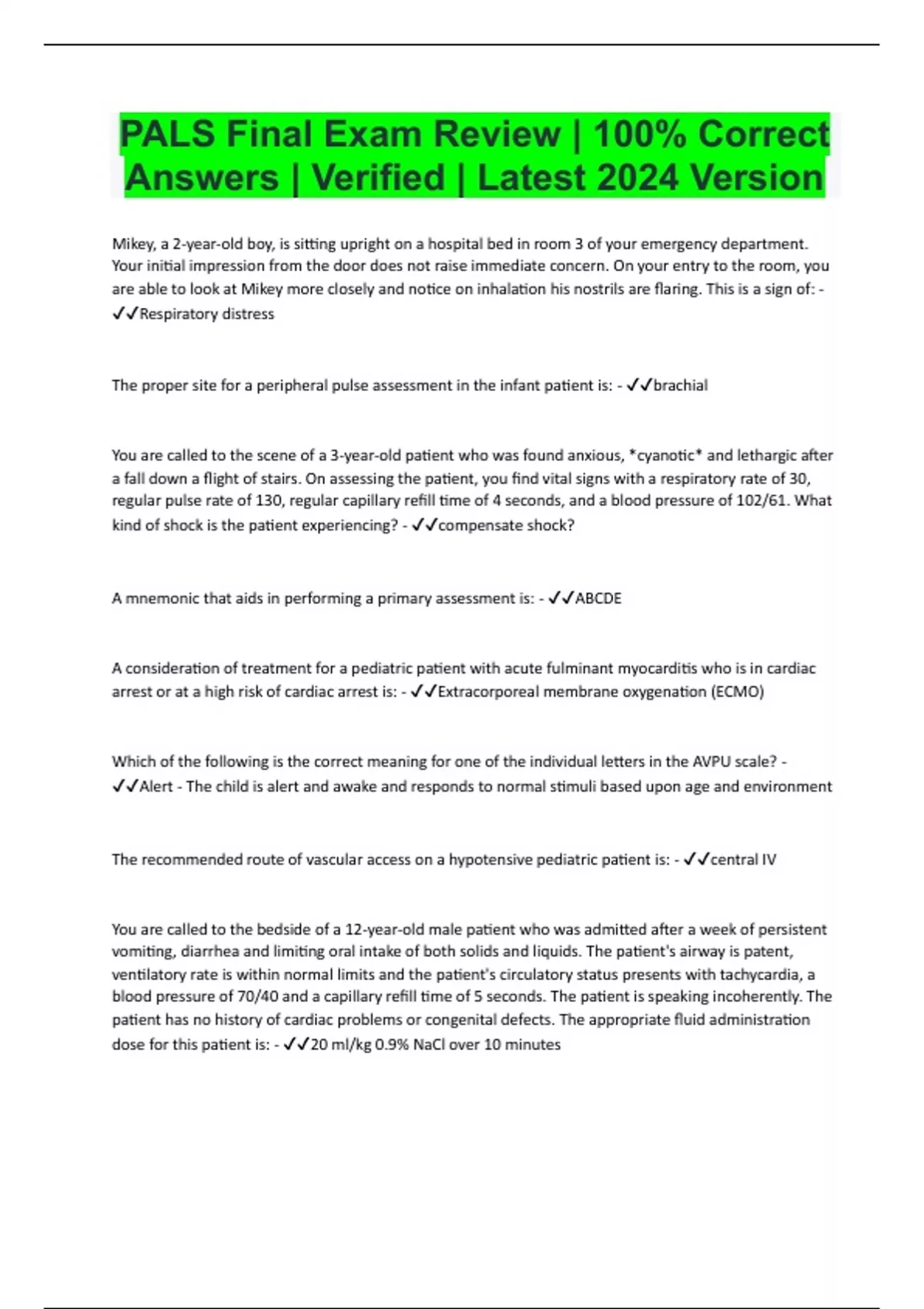 PALS Bundled Resources with Complete Solution | Expert Verified 2024/2025 | Guaranteed Success