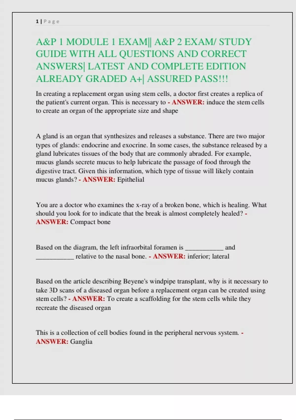 A&P 1 MODULE 1 EXAM|| A&P 2 EXAM/ STUDY GUIDE WITH ALL QUESTIONS AND CORRECT ANSWERS| LATEST AND COMPLETE EDITION ALREADY GRADED A+| ASSURED PASS!!!