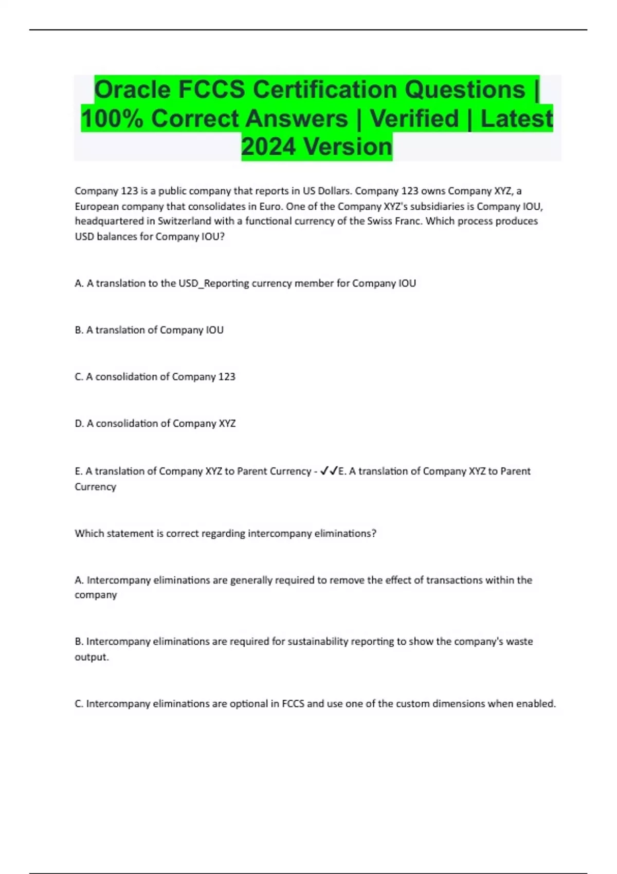 Oracle FCCS Certification Questions | 100% Correct Answers | Verified | Latest 2024 Version