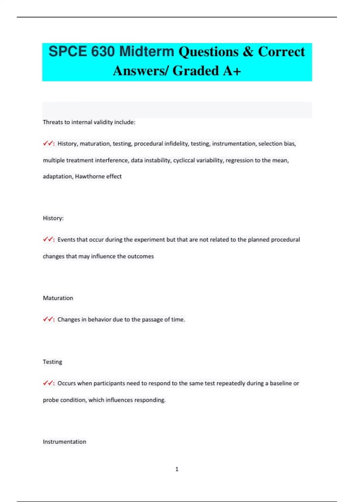 SPCE 630 Midterm Questions & Correct Answers/ Graded A+