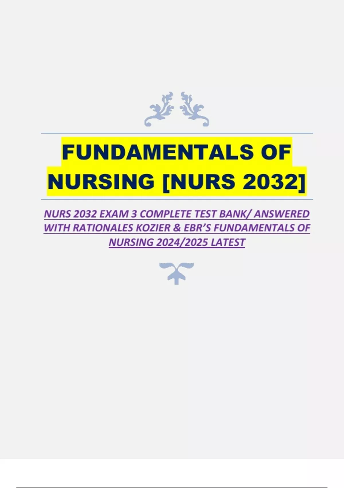 NUR 2032 EXAM 3 COMPLETE TEST BANK/ ANSWERED WITH RATIONALES KOZIER & EBR'S FUNDAMENTALS OF NURSING
