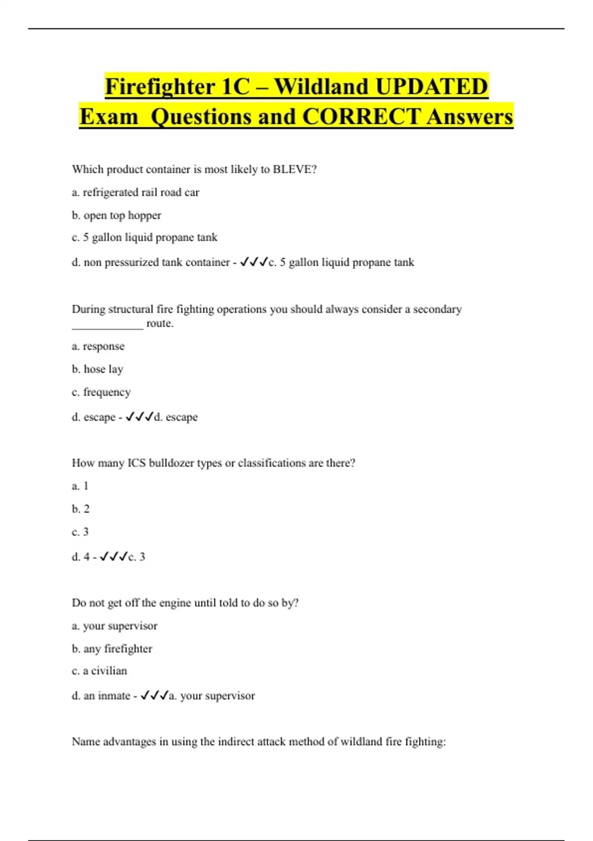 Firefighter 1C – Wildland UPDATED Exam Questions and CORRECT Answers