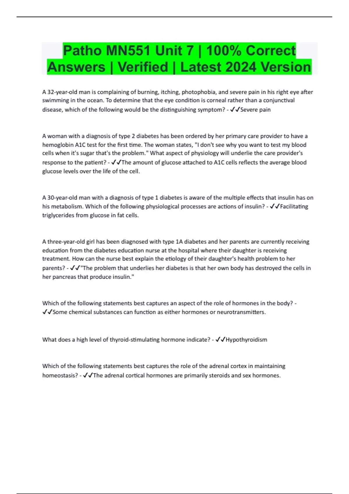 Patho MN551 Unit 7 | 100% Correct Answers | Verified | Latest 2024 Version