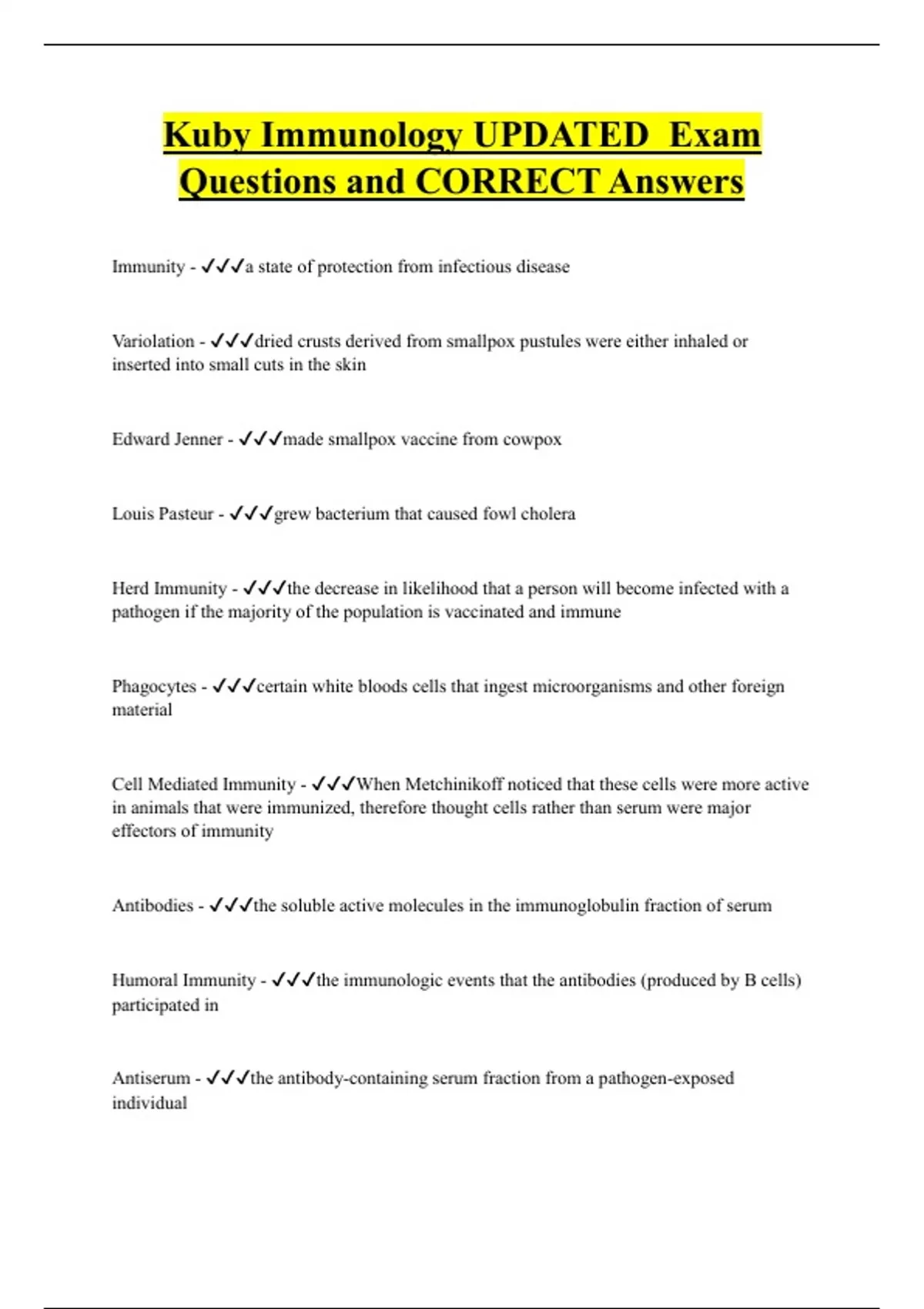Kuby Immunology UPDATED Exam Questions and CORRECT Answers