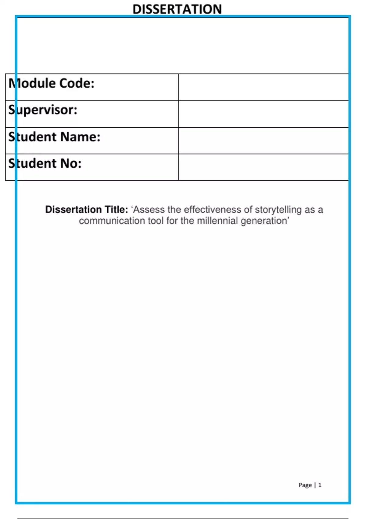 Dissertation Title: ‘Assess the effectiveness of storytelling as a communication tool for the millennial generation’