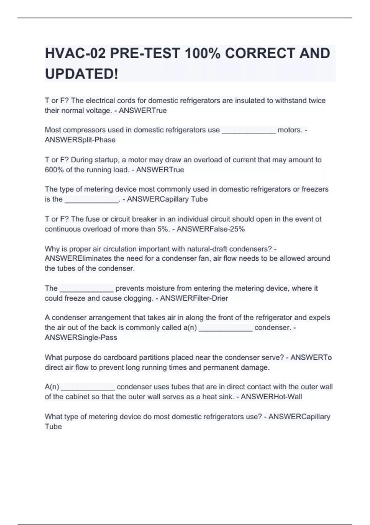 HVAC-02 PRE-TEST 100% CORRECT AND UPDATED!