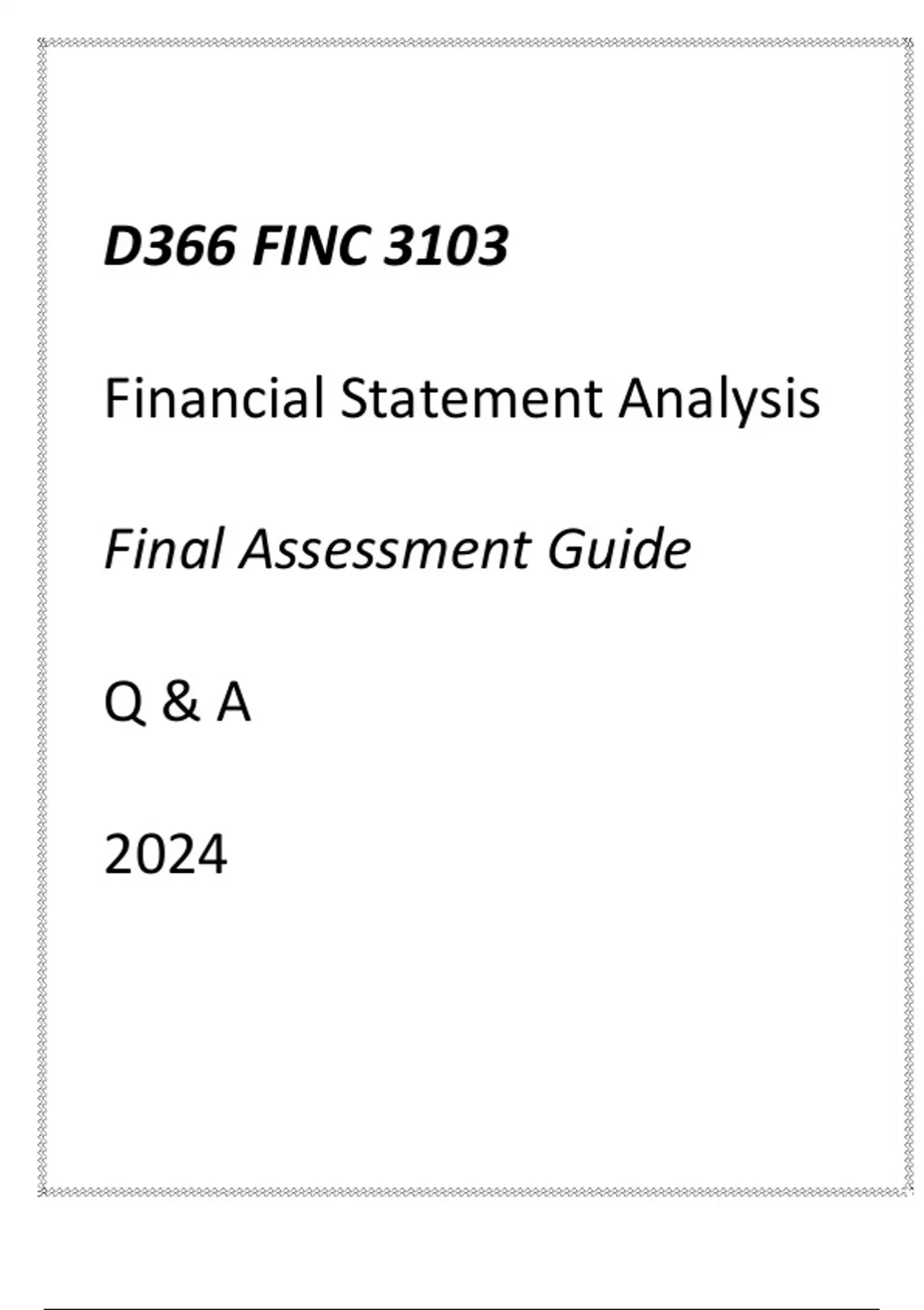 WGU D366) FINC 3103 FINANCIAL STATEMENT ANALYSIS FINAL ASSESSMENT GUIDE Q & AWGU D366) FINC 3103 FINANCIAL STATEMENT ANALYSIS FINAL ASSESSMENT GUIDE Q & A