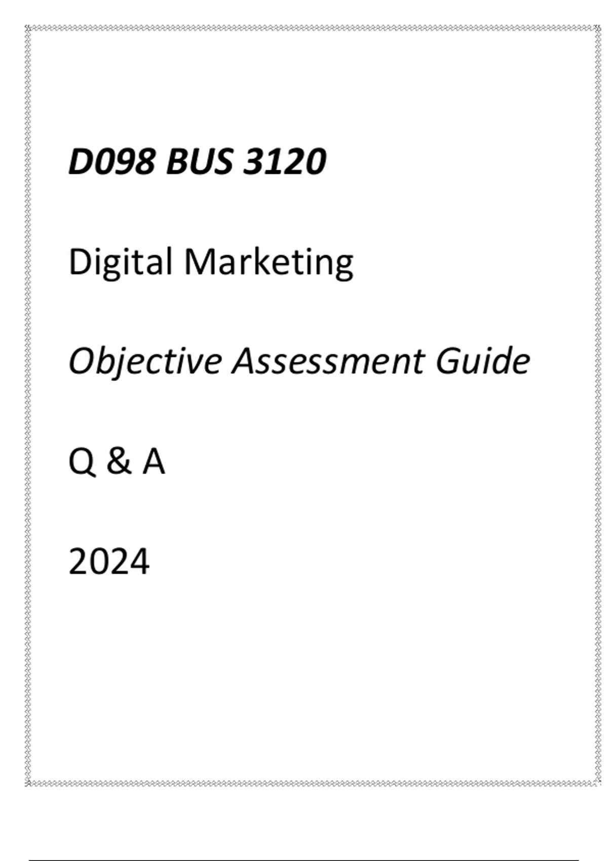 (WGU D098) BUS 3120 Digital Marketing Objective Assessment Guide Q & A 2024(WGU D098) BUS 3120 Digital Marketing Objective Assessment Guide Q & A 2024(WGU D098) BUS 3120 Digital Marketing Objective Assessment Guide Q & A 2024