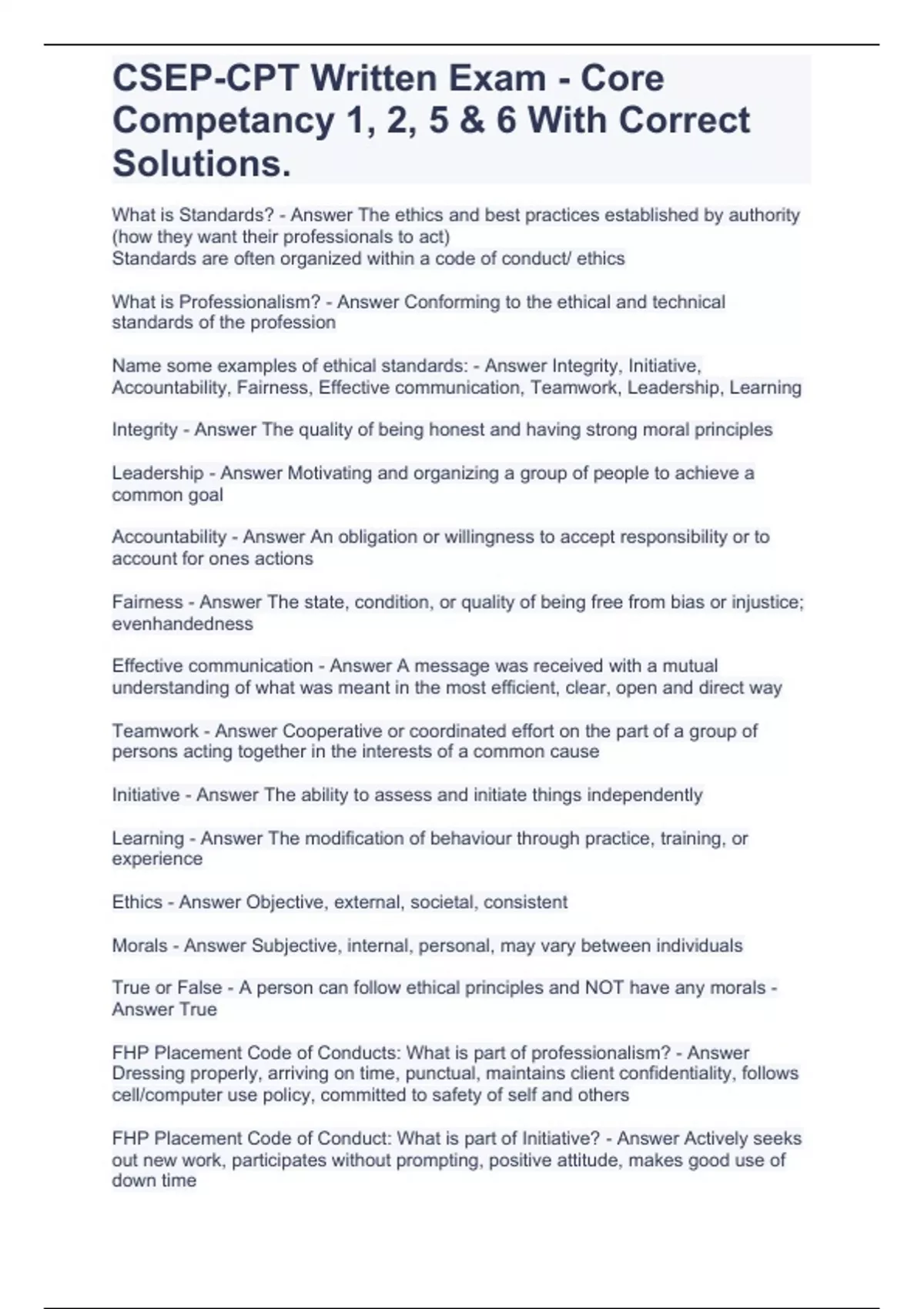 CSEP-CPT Written Exam - Core Competancy 1, 2, 5 & 6 With Correct Solutions..