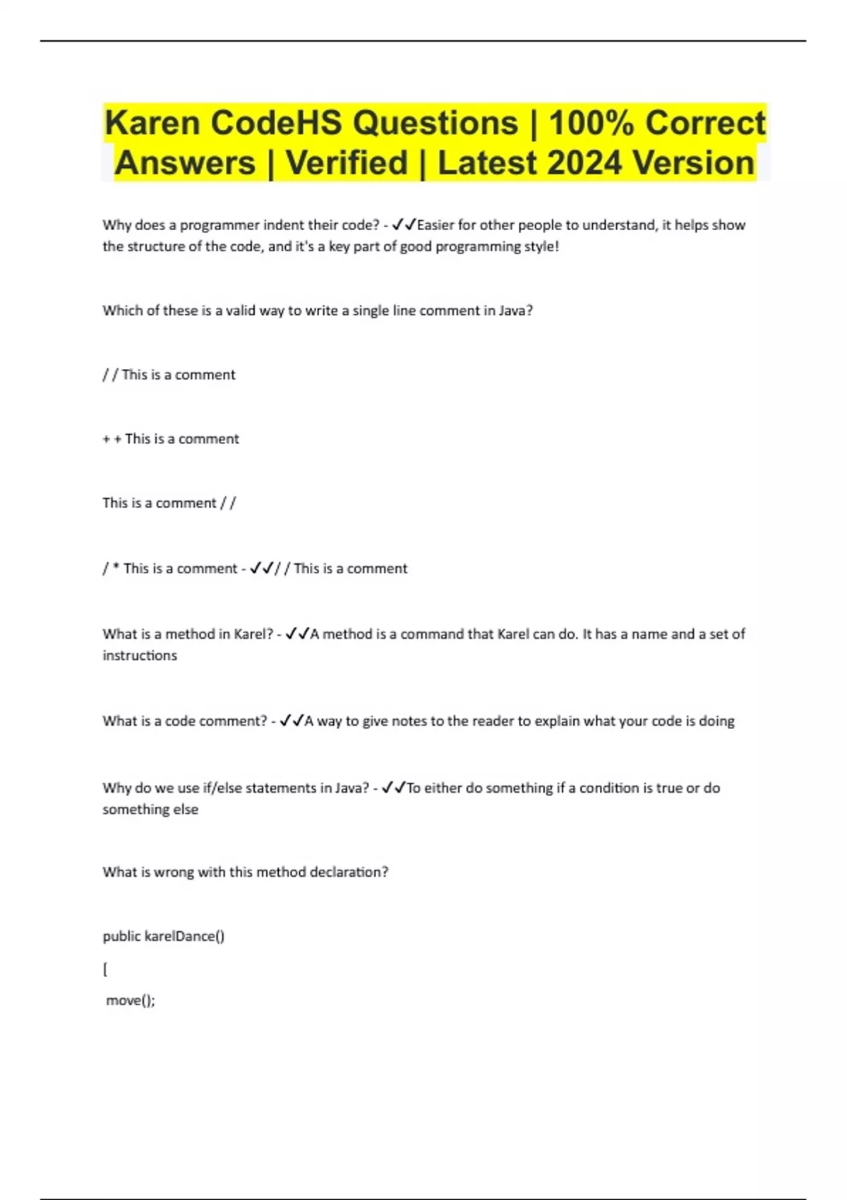Karen CodeHS Questions | 100% Correct Answers | Verified | Latest 2024 Version
