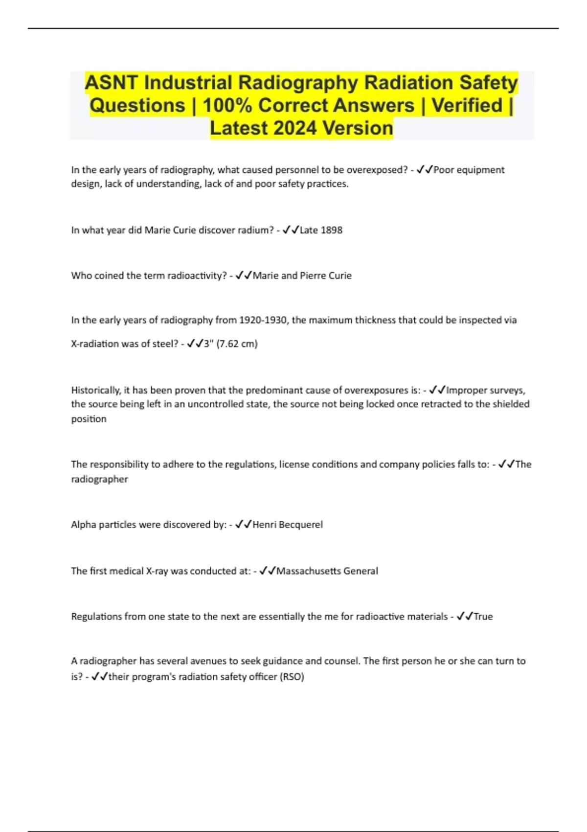 ASNT Industrial Radiography Radiation Safety Questions | 100% Correct Answers | Verified | Latest 2024 Version