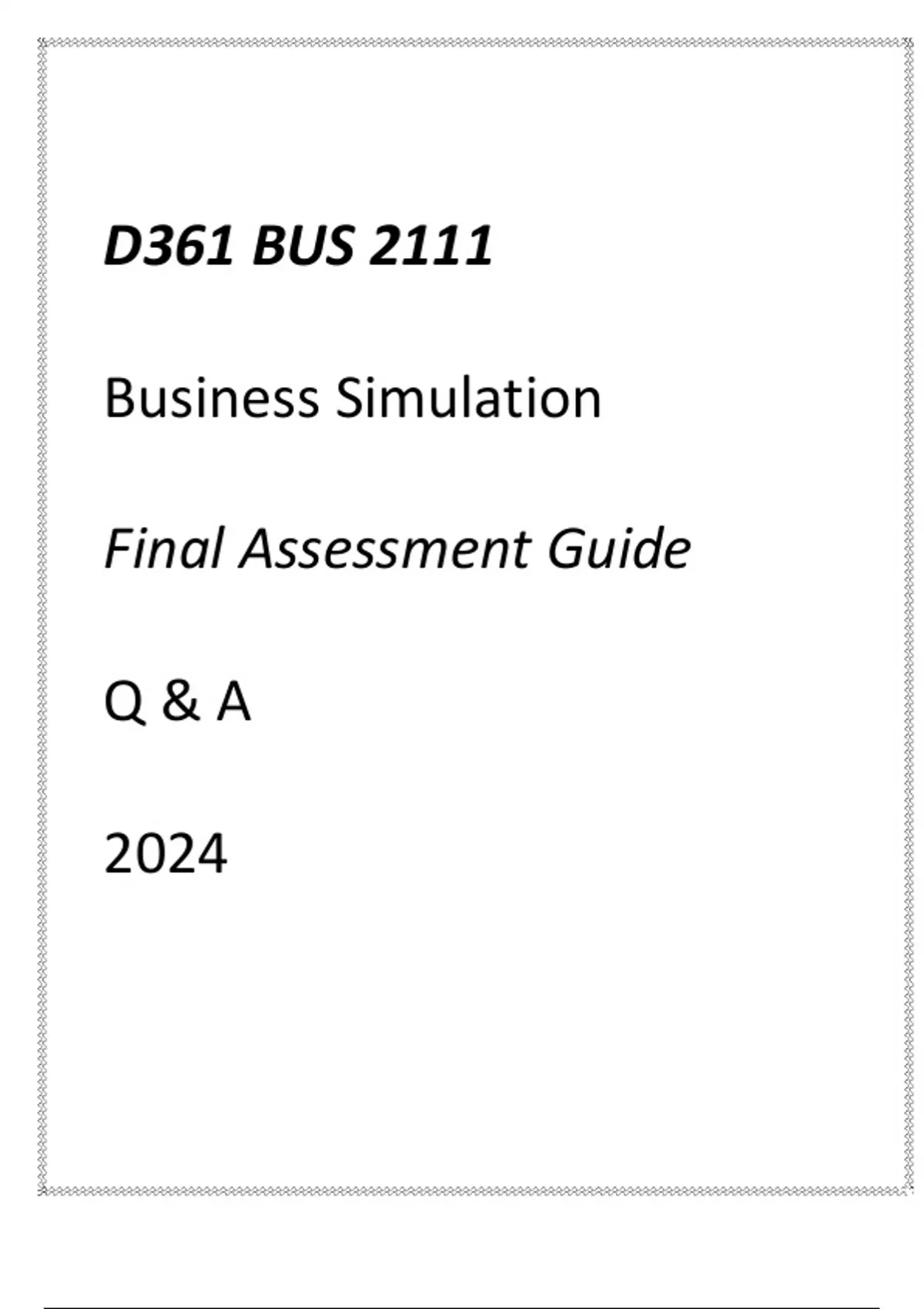 (WGU D361) BUS 2111 Business Simulation Final Assessment Guide Q & A 2024(WGU D361) BUS 2111 Business Simulation Final Assessment Guide Q & A 2024(WGU D361) BUS 2111 Business Simulation Final Assessment Guide Q & A 2024