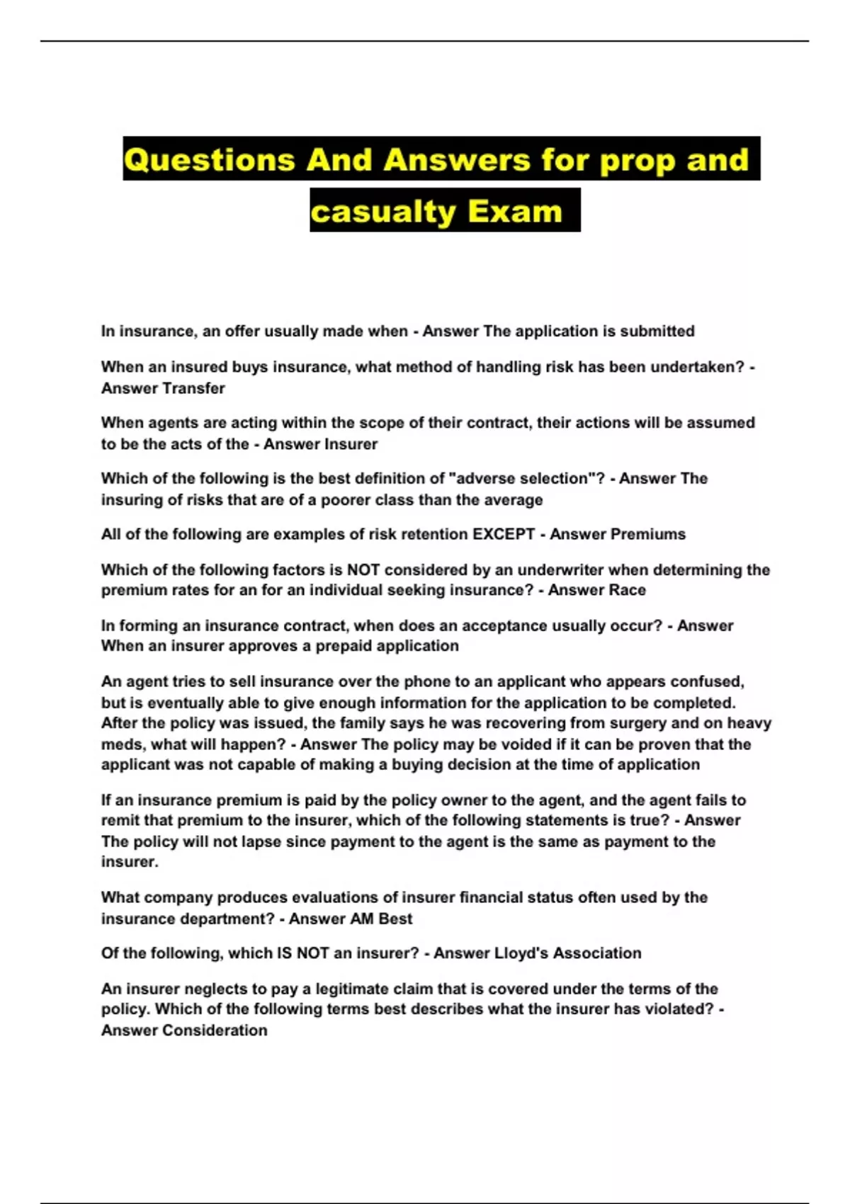Property and Casualty Insurance Packaged Exams With Verified Questions And Answers