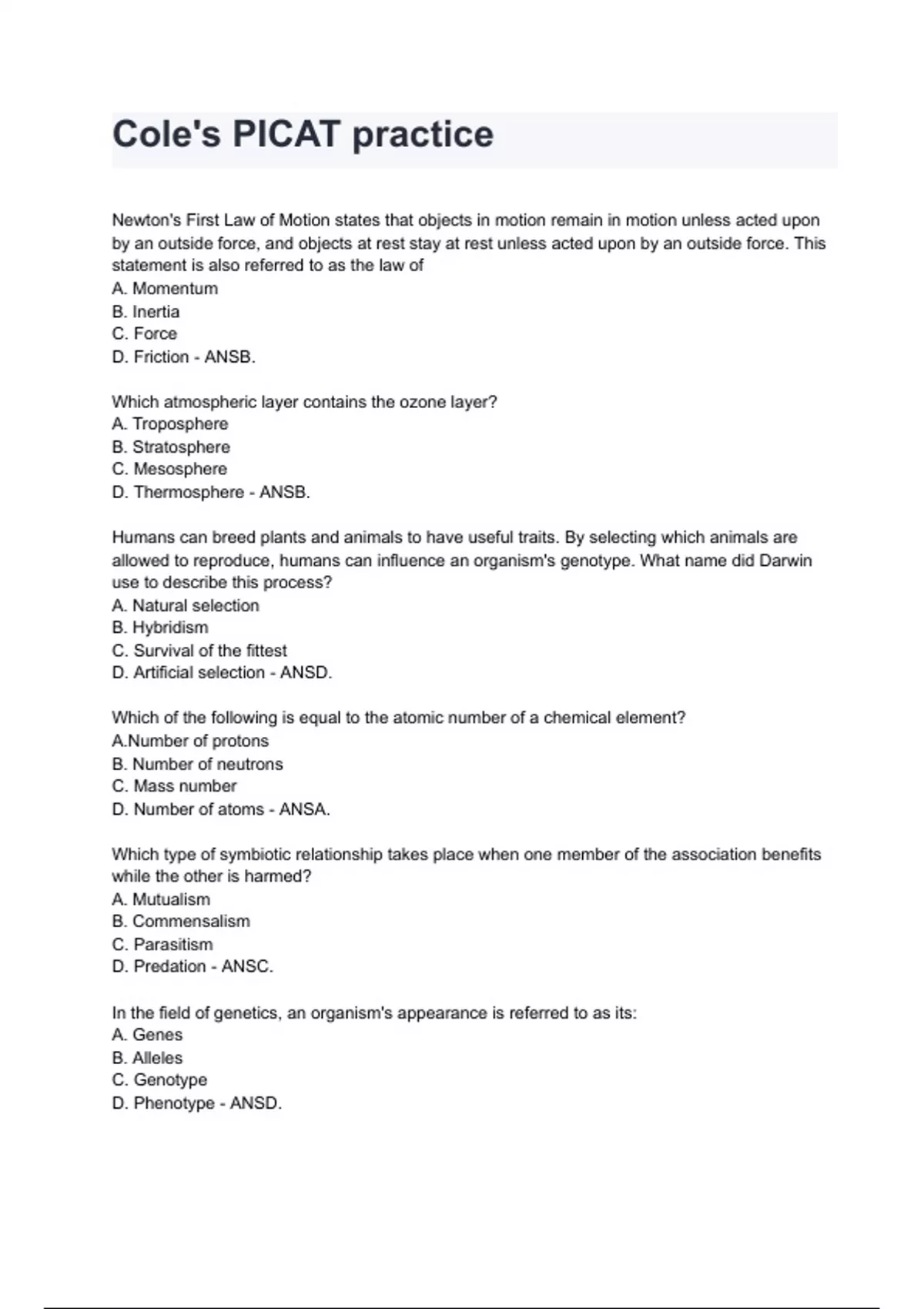 Cole's PICAT practice questions and answers guaranteed pass 2024/2025