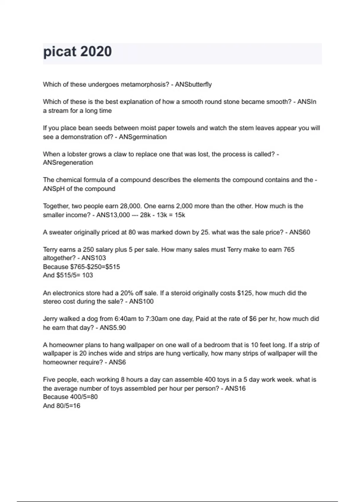 picat 2024 questions and answers guaranteed pass