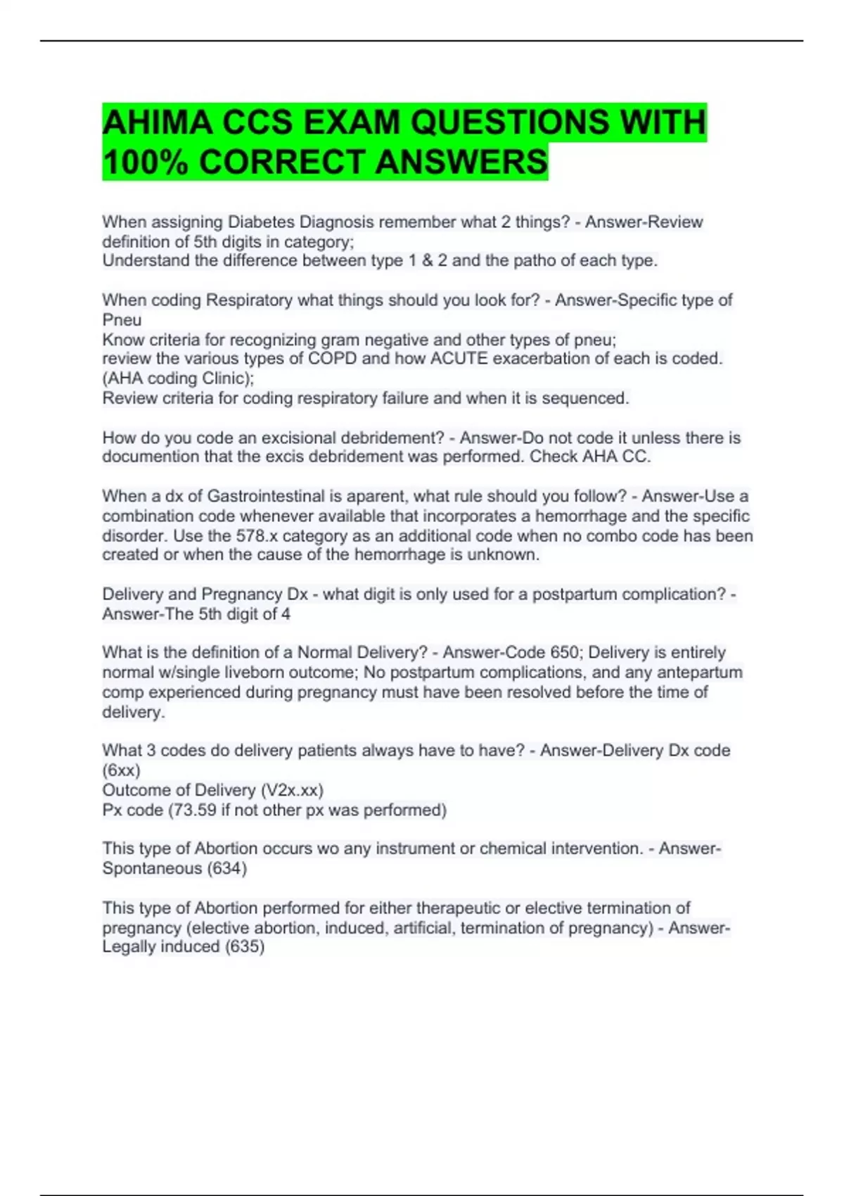 AHIMA CCS EXAM QUESTIONS WITH CORRECT ANSWERS