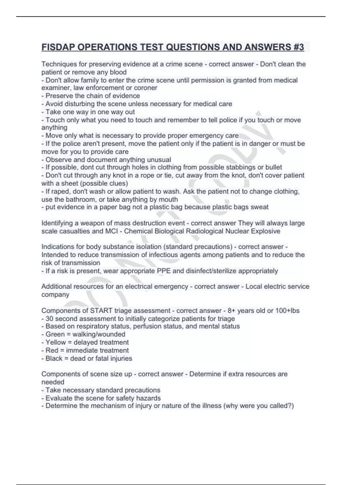 FISDAP OPERATIONS TEST QUESTIONS AND ANSWERS #3.