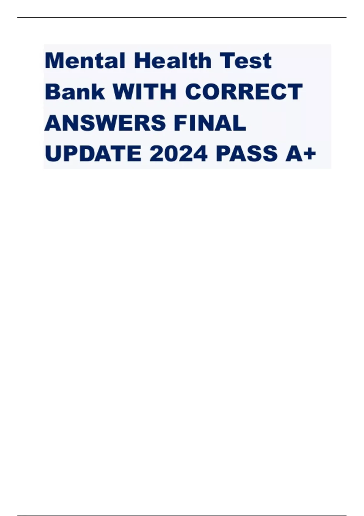Mental Health Test Bank WITH CORRECT ANSWERS FINAL UPDATE 2024 PASS A+
