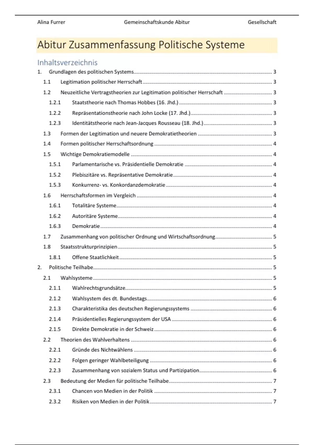 Alina Furrer Gemeinschaftskunde Abitur Gesellschaft