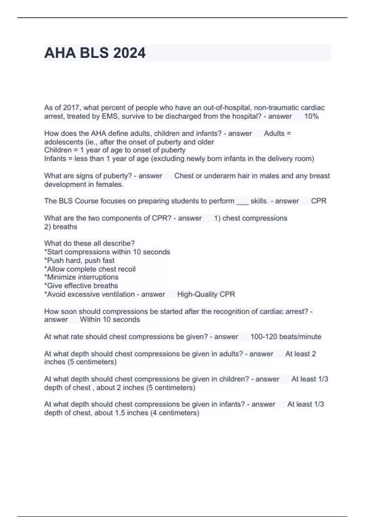 AHA BLS 2024 QUESTIONS AND ANSWERS LATEST UPDATED