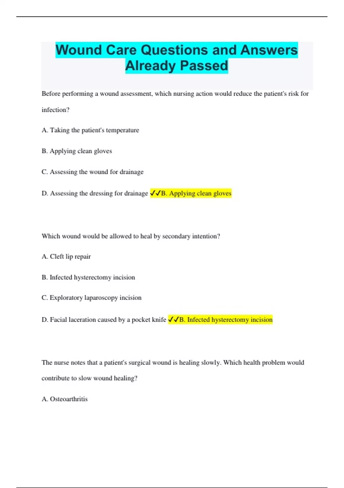 wound care questions and answers already passed