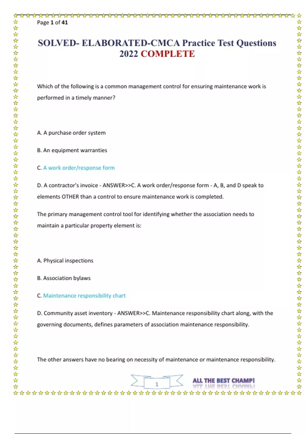 SOLVED- ELABORATED-CMCA Practice Test Questions 2022 COMPLETE