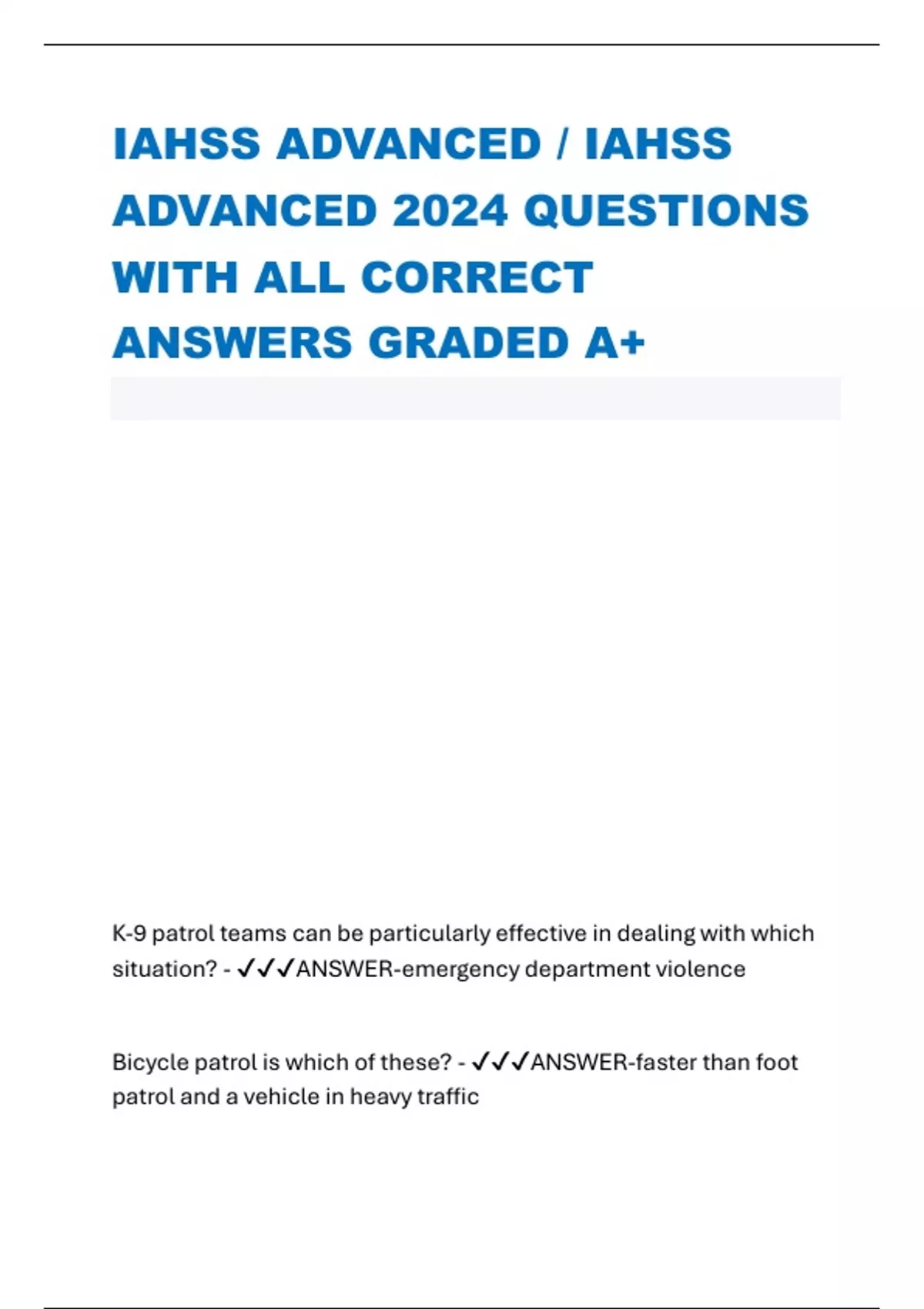 IAHSS ADVANCED / IAHSS ADVANCED 2024 QUESTIONS WITH ALL CORRECT ANSWERS GRADED A+