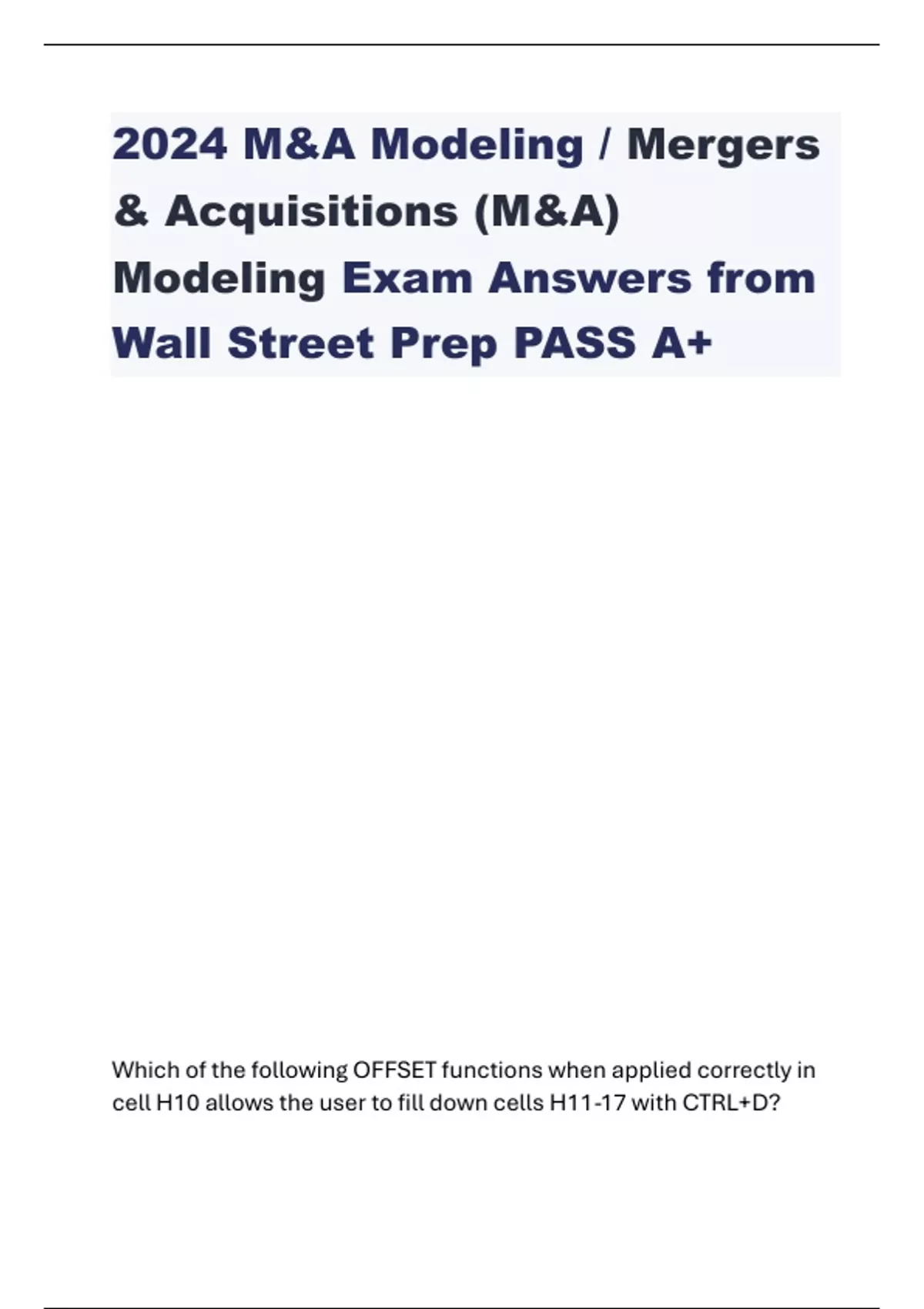 2024 M&A Modeling / Mergers & Acquisitions (M&A) Modeling Exam Answers from Wall Street Prep PASS A+