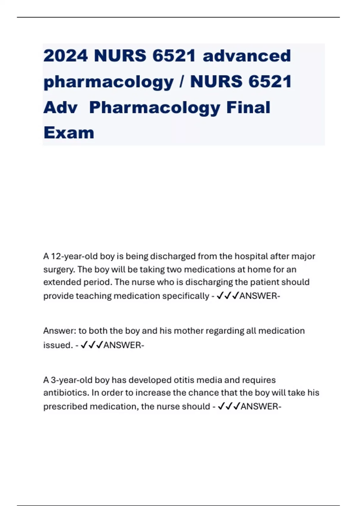- 2024 NURS 6521 advanced pharmacology / NURS 6521