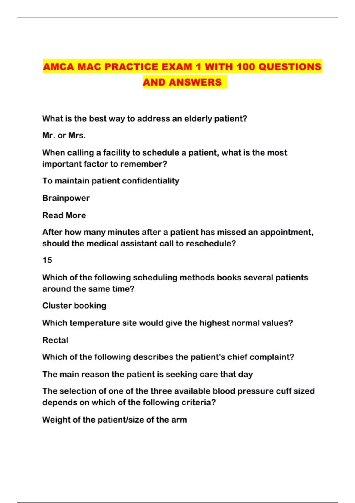AMCA MAC PRACTICE EXAM 1 WITH 100 QUESTIONS AND ANSWERS ...