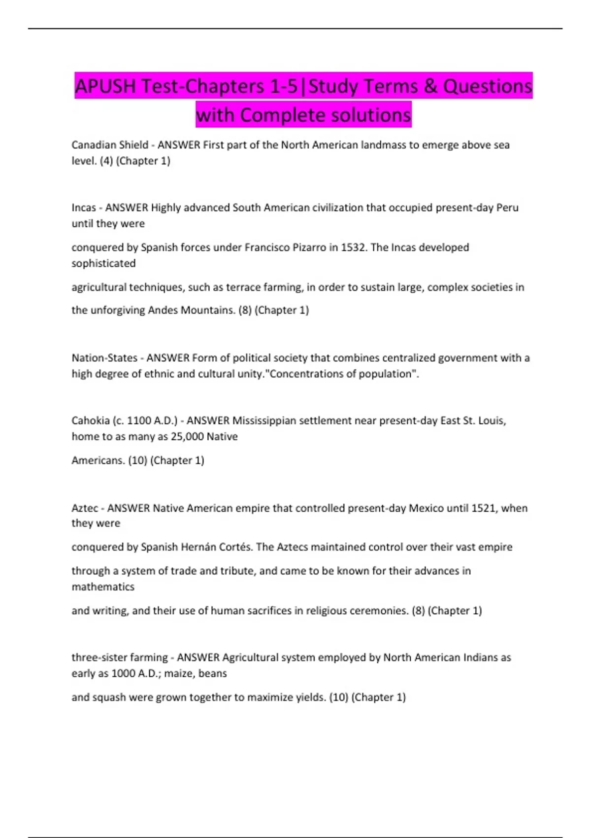 APUSH Test-Chapters 1-5|Study Terms & Questions with Complete solutions