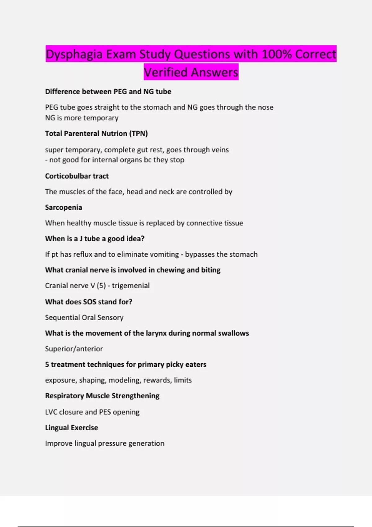 Dysphagia Exam Study Questions with 100% Correct Verified Answers