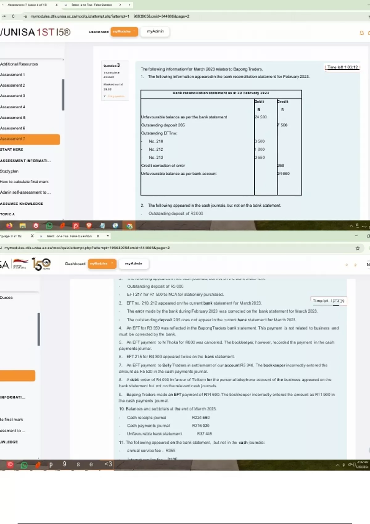• The cash receipts and cash payments journals (bank columns only), properly totalled, as at 31 March 2023