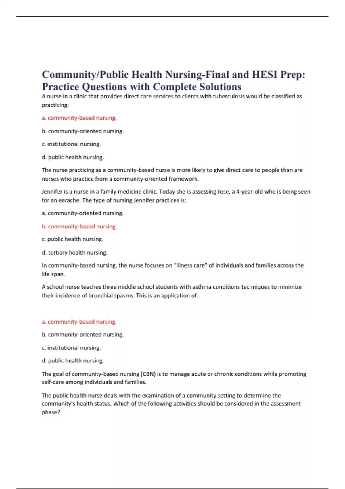 Community/Public Health Nursing-Final and HESI Prep: Practice Questions with Complete Solutions