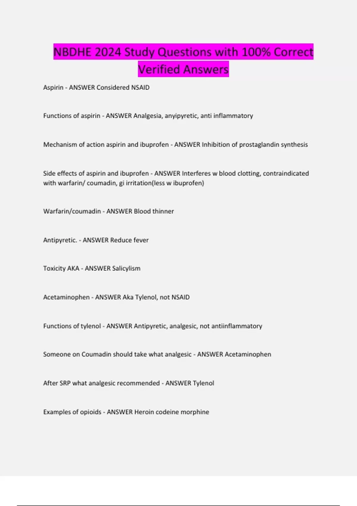 NBDHE 2024 Study Questions with 100% Correct Verified Answers