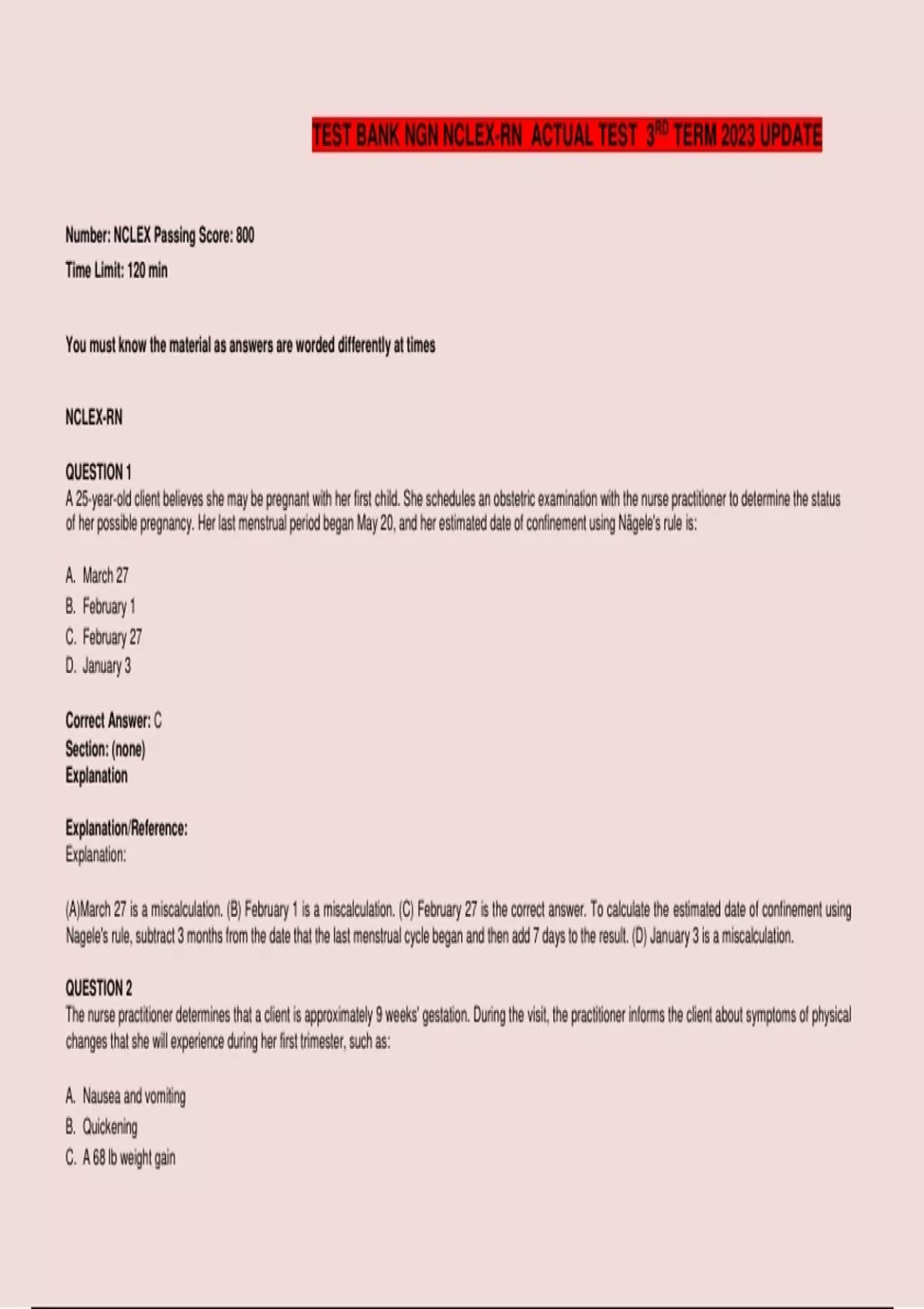 TEST BANK NGN NCLEX-RN ACTUAL TEST 3 RD TERM 2023 UPDATE