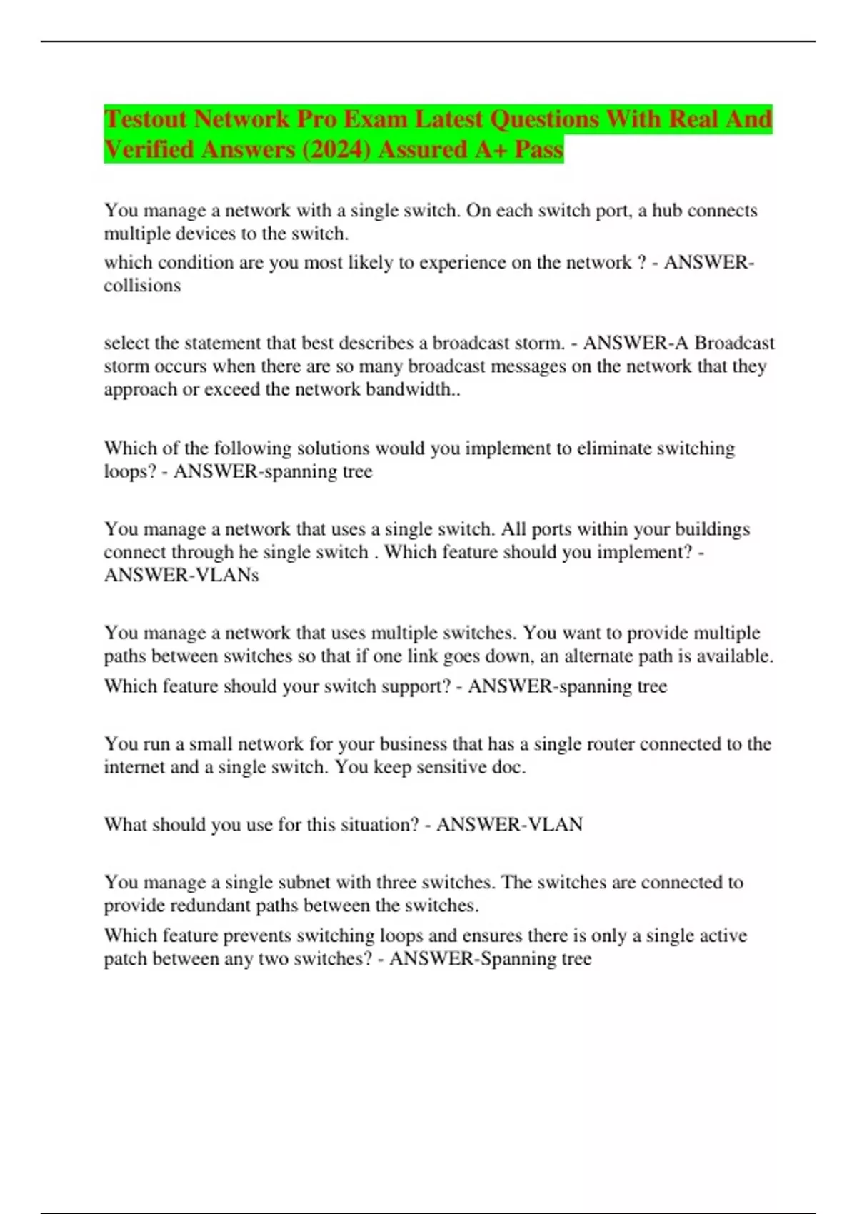 Testout Network Pro Exam Latest Questions With Real And Verified Answers (2024) Assured A+ Pass Testout Network Pro Exam Latest Questions With Real And Verified Answers (2024) Assured A+ Pass Testout Network Pro Exam Latest Questions With Real And Verified Answers (2024) Assured A+ Pass