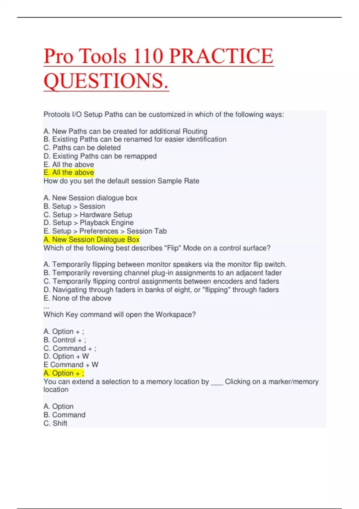 - Pro Tools 110 PRACTICE