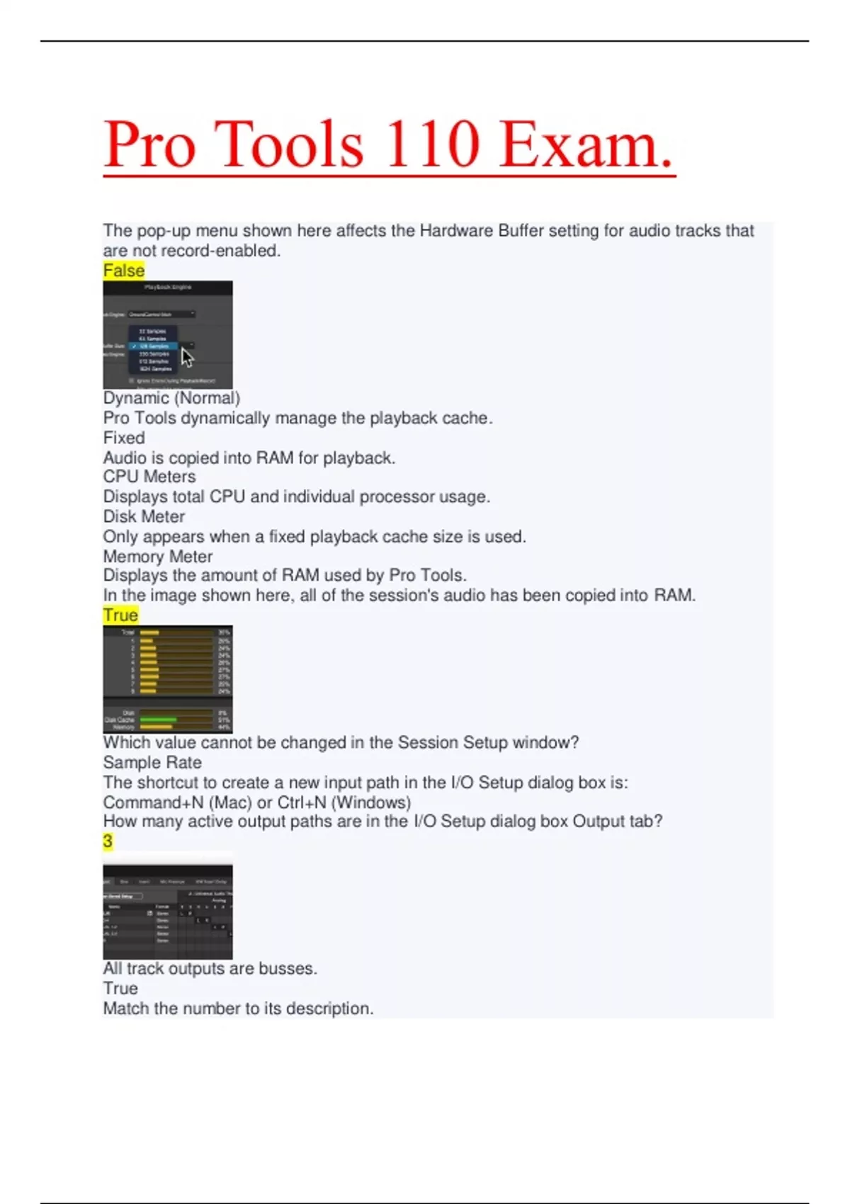 Pro Tools 110 Exam. Leading Score