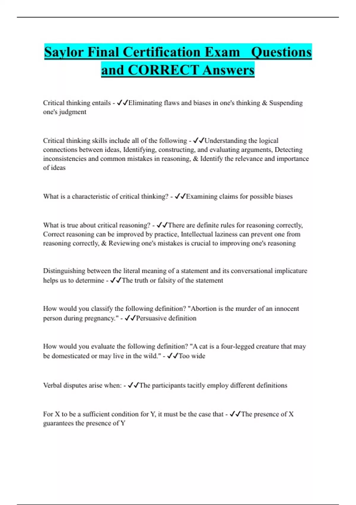 Saylor Final Certification Exam Questions and CORRECT Answers