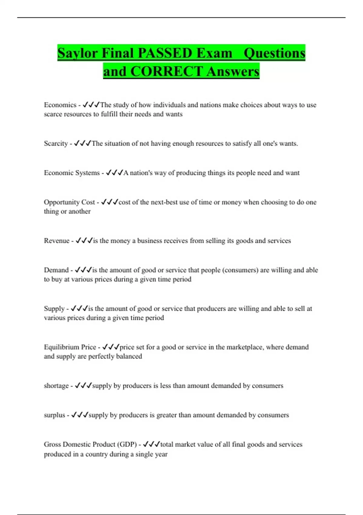 Saylor Final PASSED Exam Questions and CORRECT Answers